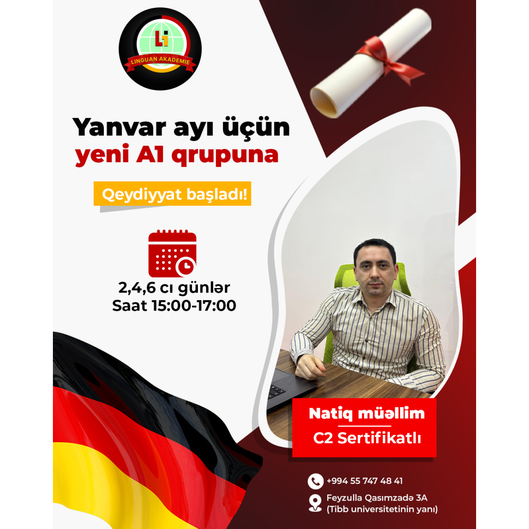Dil kursu reklam şəkli, dil kursu promo postu, sərfəli qrafik dizayn xidmətləri, təhsil reklam qrafik dizayni